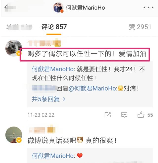 对此何猷君终于在11月23号的深夜2点钟发文回怼恶评,他回应得很刚,获得网友力挺。何猷君直言娶奚梦瑶生子并不是为了分财产,而是真爱。何猷君在文中说到自己一年多不怎么发微博,看到难听的评论很不开心,经常看到说她老婆各种不好,可一直想帮老婆奚梦瑶回应恶评,却被她拦住。