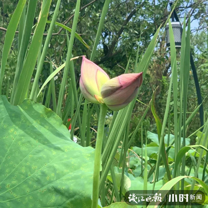 并蒂莲因两朵花并开而得名,相当罕见。上周,洪园东关荷塘开出2株并蒂莲,但保安在巡逻时发现,其中一株在开放第二天就没了。