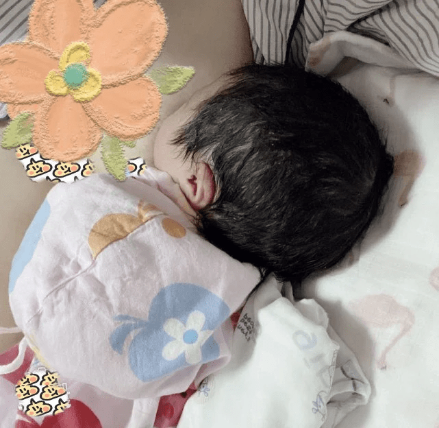 从另一张图片可以看到,虽然女儿刚出生不久,可满头浓密的黑发,显得非常可爱和健康。