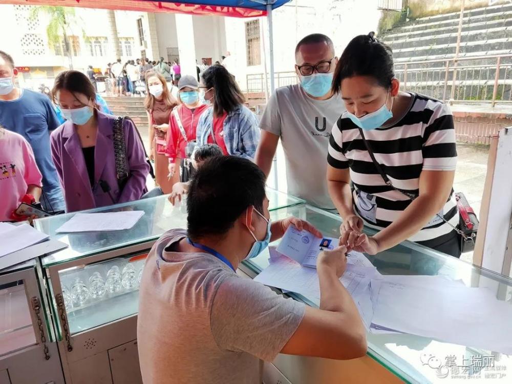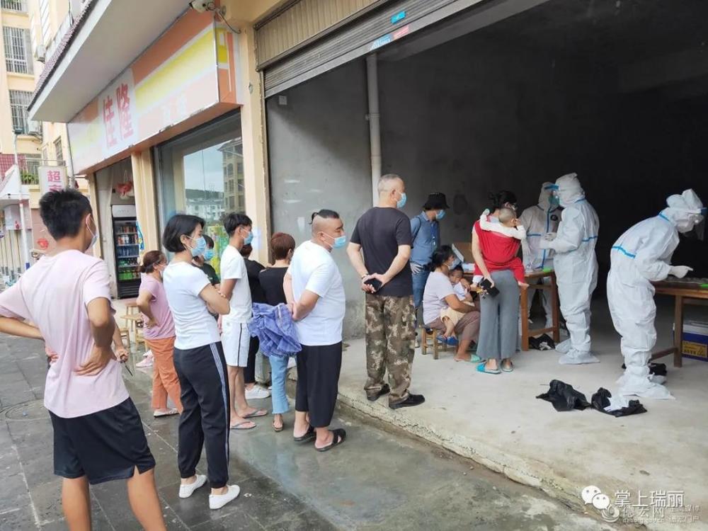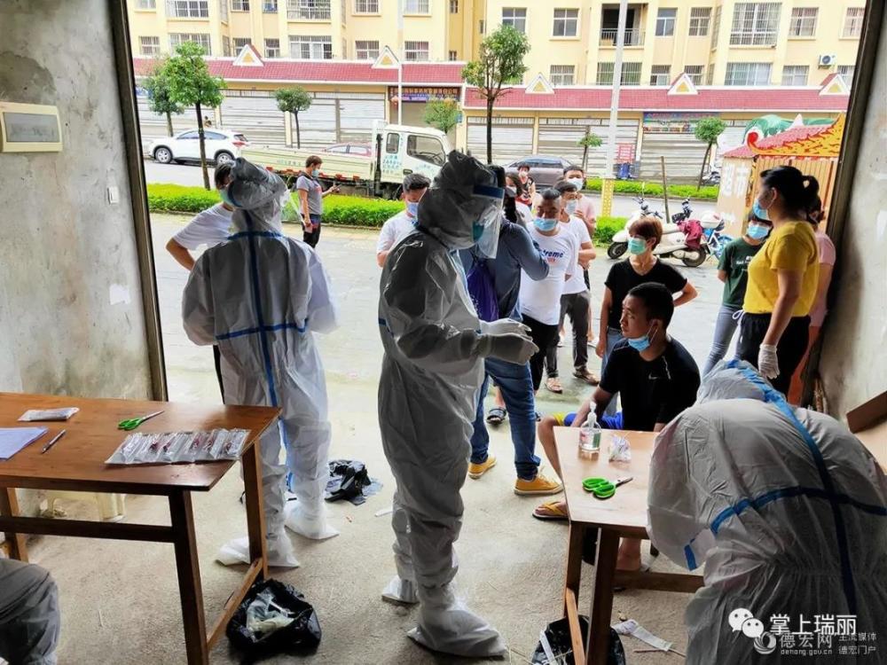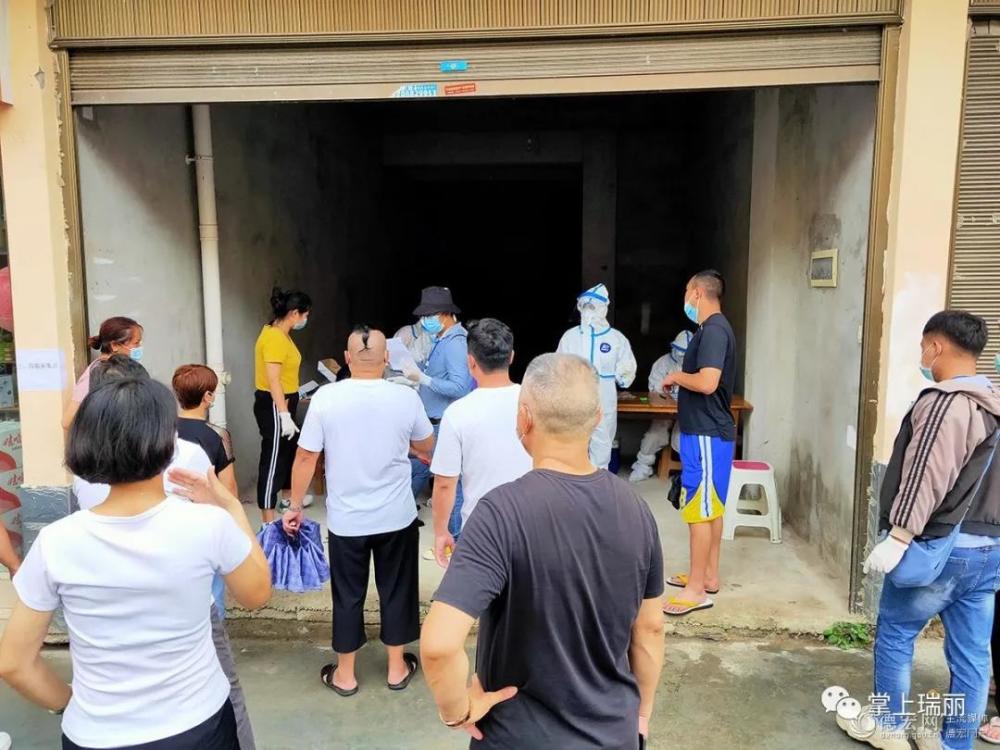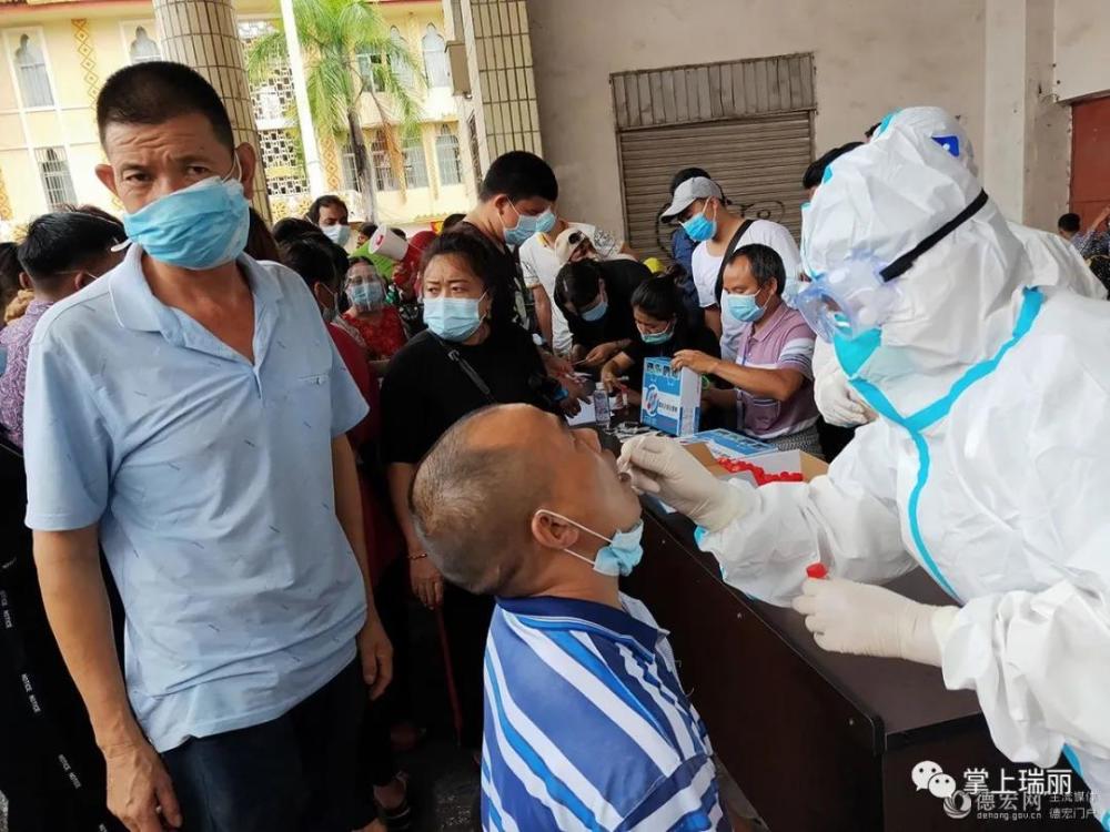 新京报快讯 据掌上瑞丽微信消息,9月15日12点,在瑞丽市勐卯镇友谊文化广场内,医务人员正在为中缅边民进行核酸检测。在瑞丽市友谊社区,工作人员为居民进行核酸检测;在瑞丽市新安社区 ,人们早早接到社区通知来到社区集中开展登记检测。