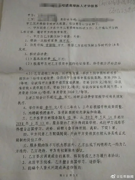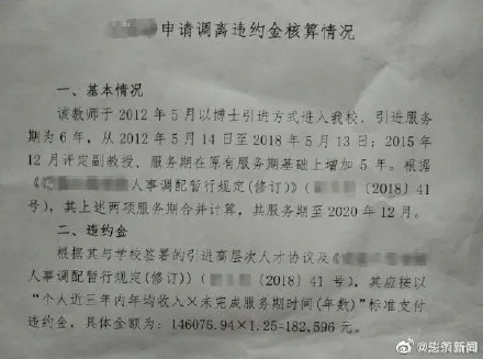 但王守正说,自己是在2015年12月评副教授的,期间并未跟学校签署任何关于服务期的协议。对此,南昌某高校在仲裁裁决书中辩称:2018年,学校修订后的公示文件规定“在学校工作期间评定了高级专业技术资格人员的服务期为5年”以及“同一人员应完成的各类服务期累计合并计算”。学校早前出台的文件也对上述内容作出规定。