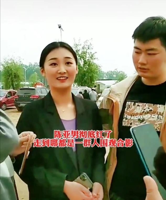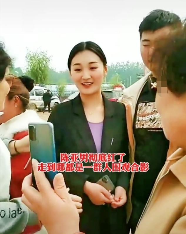 视频中,陈亚男与朱小伟一出门便遭到许多路人围观,有人甚至热情地向其发出合影邀请,对此陈亚男表情羞涩,但并未拒绝合影,反而面带笑颜地和路人闲聊。