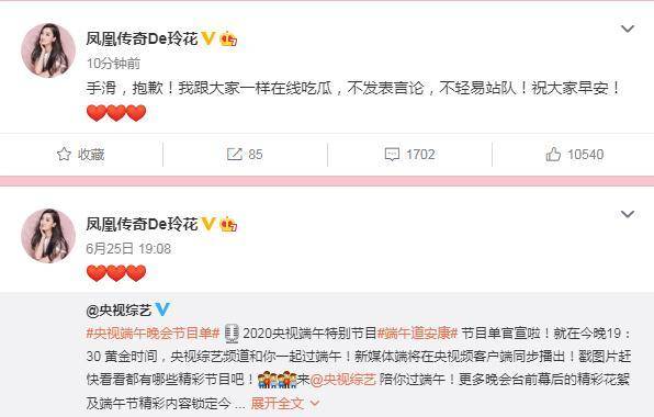 最近因为老板徐明朝和Yamy的事,引发了很多争议。就连徐明朝的妻子玲花也开始吃瓜了,甚至点赞了DISS老公的微博。刚才,玲花再次发文说:“手滑,抱歉!我跟大家一样在线吃瓜,不发表言论,不轻易站队!祝大家早安!”