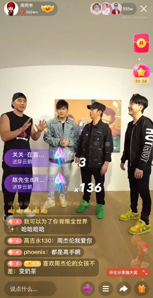 周董此次直播的人气和礼物爆棚,关之琳、郎朗、华少、张继科、陈小春等大量明星涌入直播间支持。