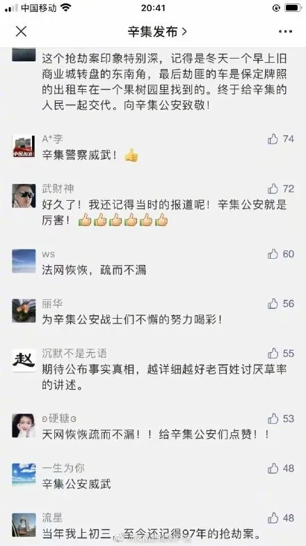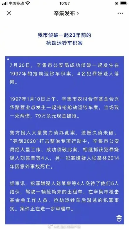 虎扑7月30日讯 近日,石家庄23年前特大抢运钞车杀人案终于告破。新闻发出后引起了网友的热议,具体内容如下: